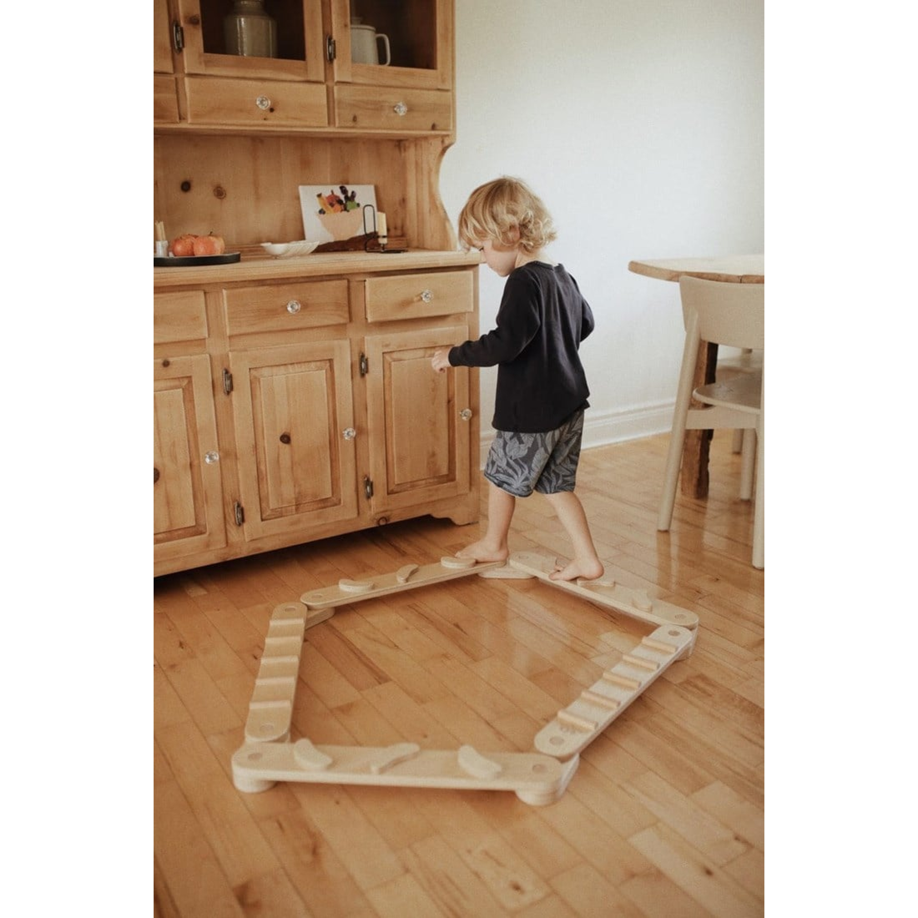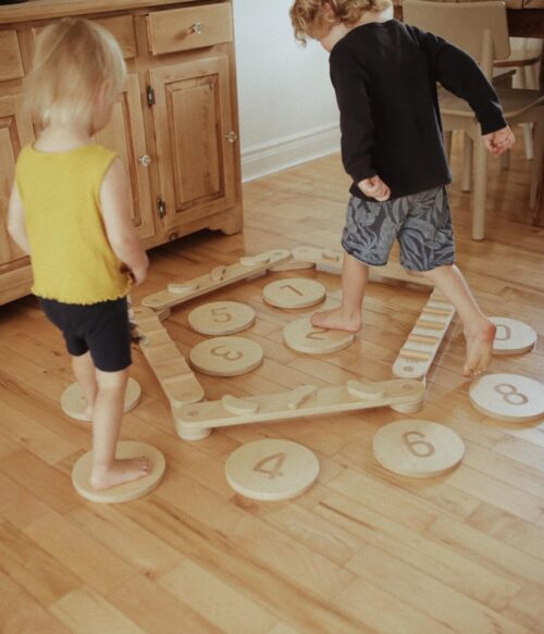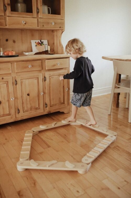 Het duurzame, milieuvriendelijke hout voelt stevig aan en is veilig afgewerkt voor kleine handjes. De planken en stepping stones zijn onderdeel van de Kinderfeets Pikler Gym-lijn en stimuleren niet alleen balans, maar ook kracht, coördinatie en zelfvertrouwen.